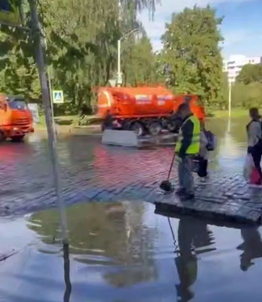 В Telegram-канале «Петербург с огоньком» появилось видео из Выборга. На опубликованных кадрах можно увидеть, что специалисты продолжают работу по откачке воды, но большая часть дорог уже сухая.
