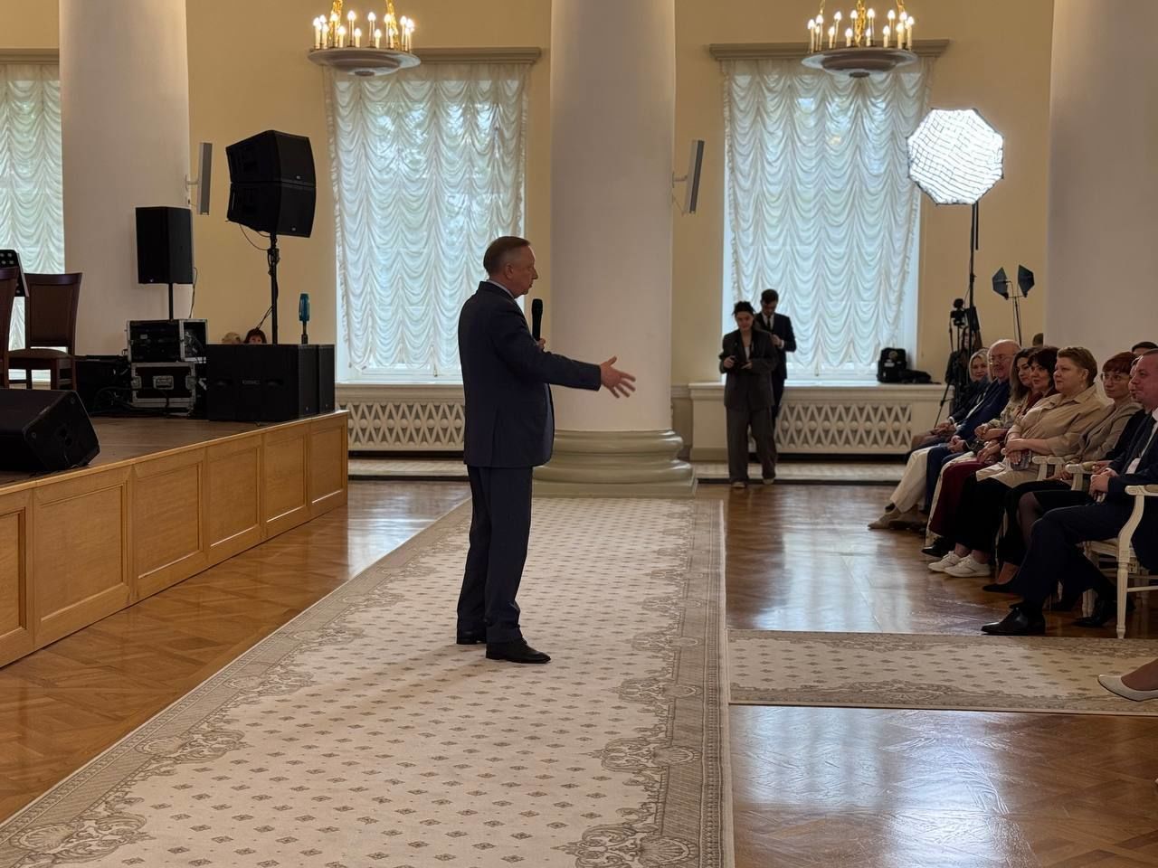 «Сегодня здесь собрались лучшие учителя страны. Каждый из вас – пример преданности своему делу, образец профессионального мастерства и творческого подхода. В течение следующей недели вы сможете пообщаться друг с другом, поделиться опытом, обменяться идеями и найти вдохновение для новых педагогических подходов и проектов. Всё это пригодится каждому из вас. Педагогическое мастерство – искусство, не имеющее границ. Каждый новый день приносит вам новые вызовы и задачи. Сталкивает вас с трудностями и испытаниями. Но искренняя любовь к детям помогает преодолевать все преграды», – сказал Александр Беглов.