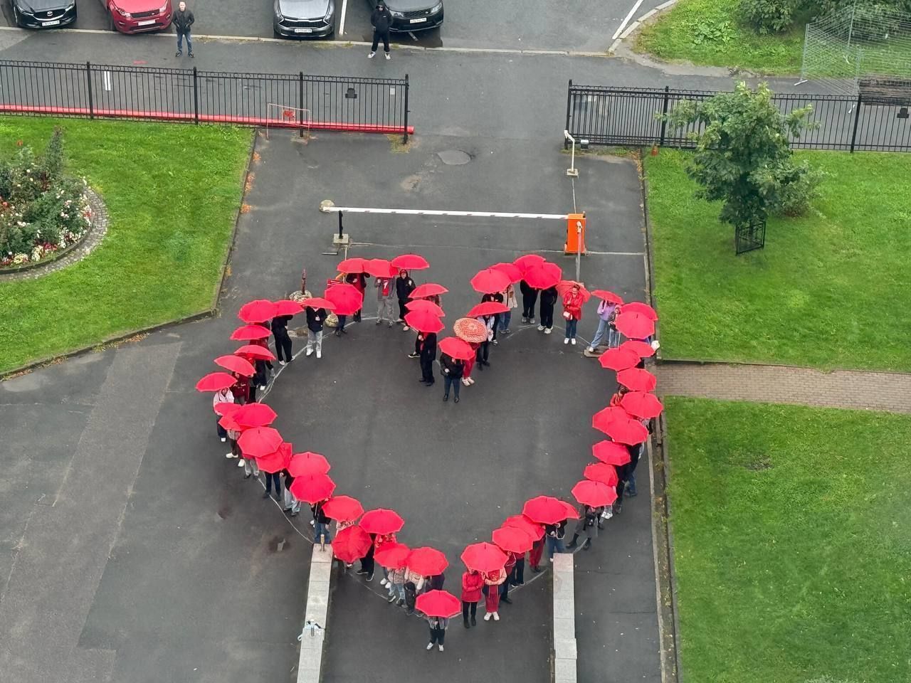 В Петербурге 50 красных зонтов сложились в огромное сердце в честь Дня донора костного мозга