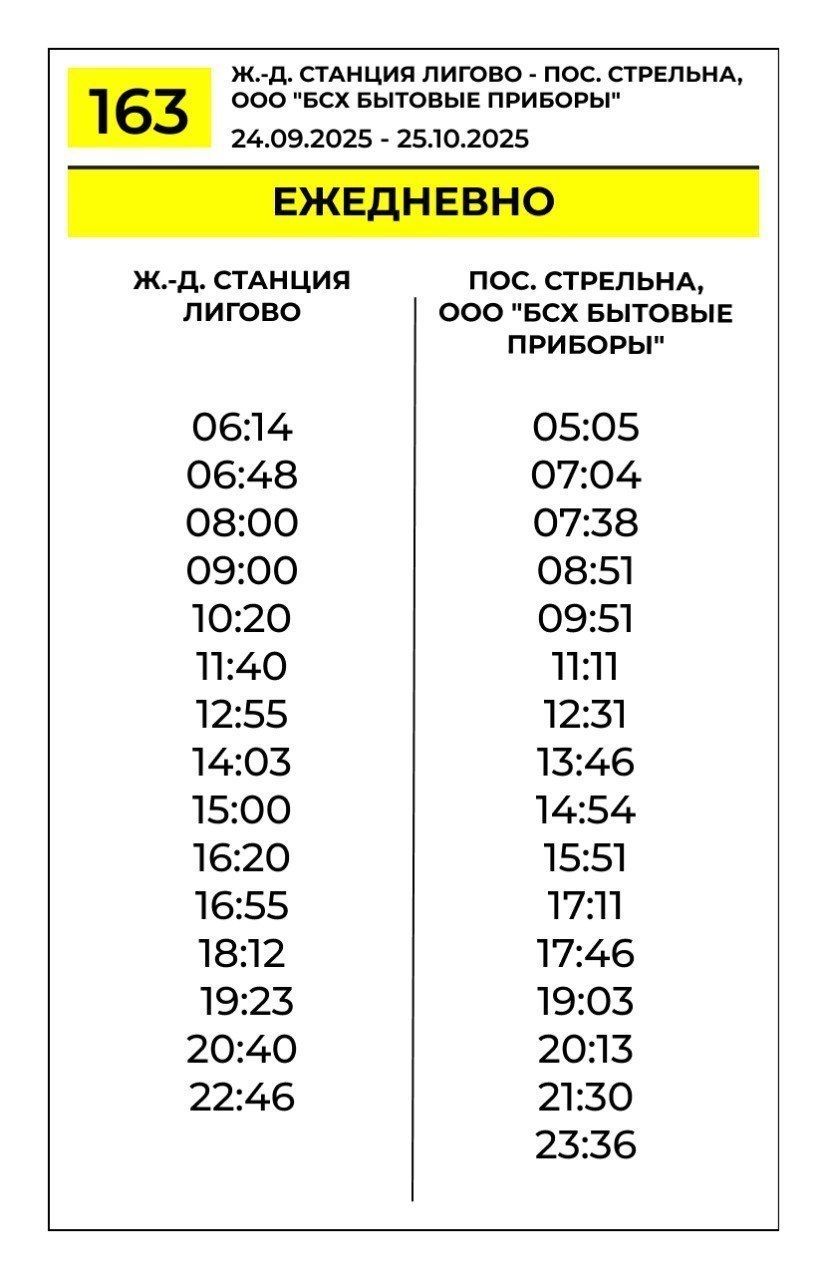 В Петербурге с 24 сентября по 25 октября изменится расписание трех автобусных маршрутов. Речь идет об автобусах под номерами №163, 229, 359, сообщает организатор перевозок города.
