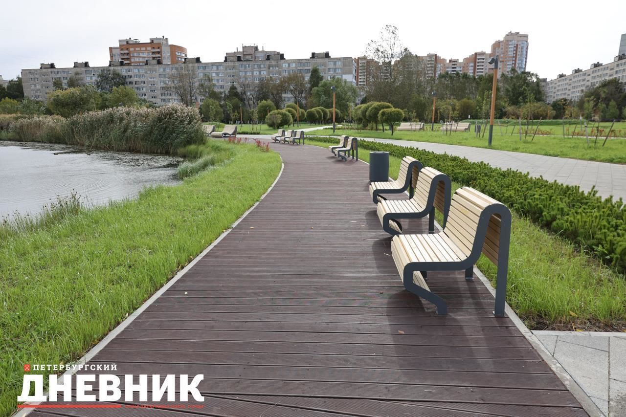 Что касается Федоровского сквера на Дунайском проспекте, то его площадь превышает 100 тысяч квадратных метров. Здесь, помимо разновозрастных детских площадок, появилась площадка для стритбола и качели под навесом.