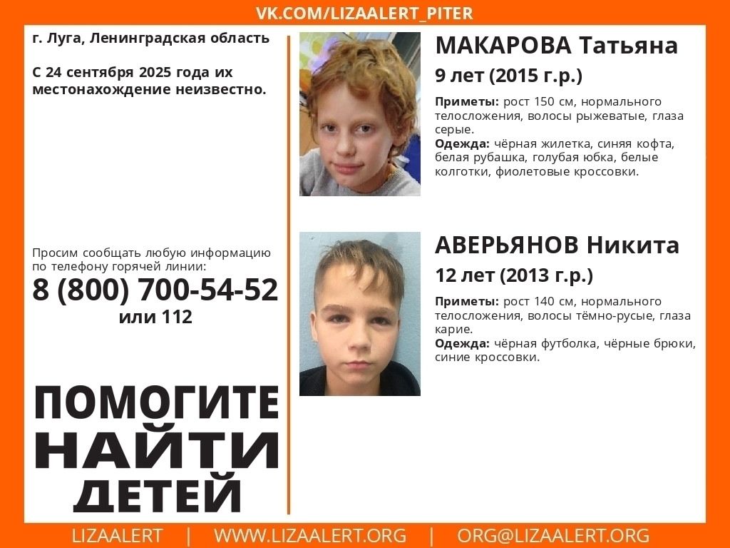 В городе Луге в Ленинградской области пропали двое детей, рассказали волонтеры организации «ЛизаАлерт» в соцсетях.