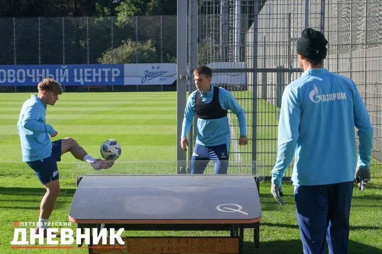 На площадке «Газпром»-тренировочного центра футболисты размялись и сыграли в текбол, а также другие активности с мячом.