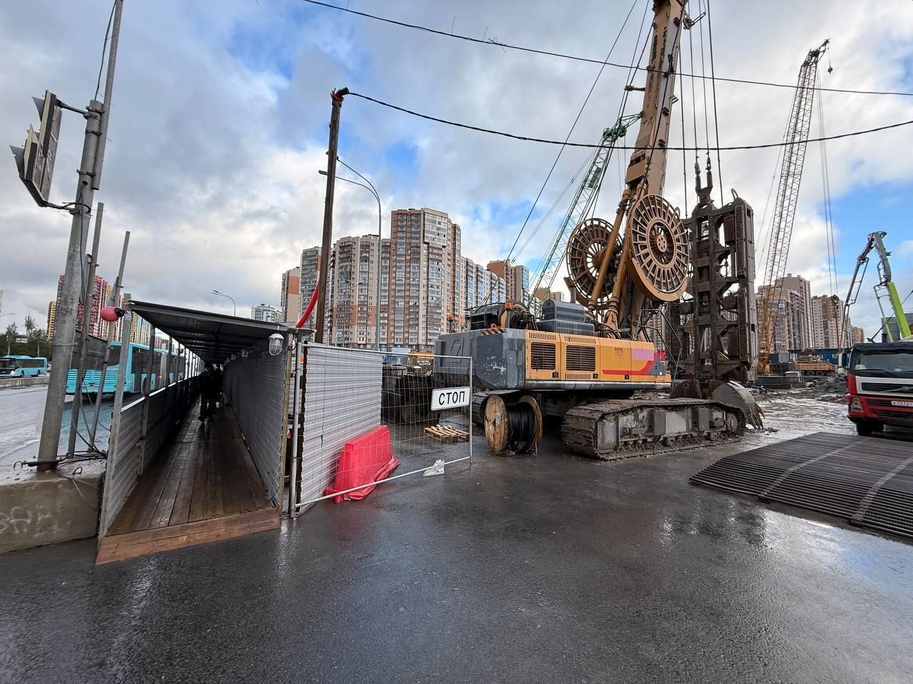 В Петербурге продолжается строительство станции «Каменка» Невско-Василеостровской линии метрополитена. На пересечении Комендантского и Шуваловского проспектов в связи со строительством станции ограничено движение, сообщили сегодня в телеграм-канале «Подземник».