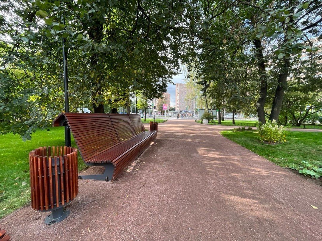 Благоустройство проводится в рамках федерального проекта «Формирование комфортной городской среды». Уже обустроены современные зоны отдыха с деревянными скамьями, урнами и вазонами для цветов. Дорожки сквера частично выложены гранитной плиткой, а часть оставлена с набивным покрытием для сохранения аутентичности.