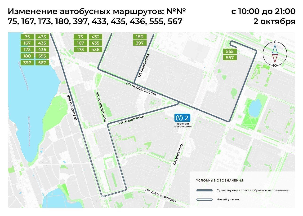 На Выборгском шоссе 2 октября изменятся трассы 13 автобусов