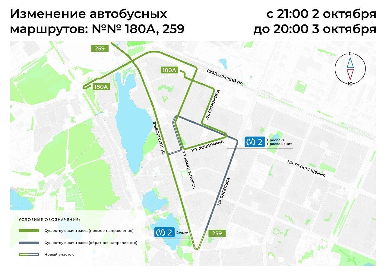 Кроме того, с 21:00 2 октября до 20:00 3 октября изменятся трассы автобусных маршрутов № 180А, 259.