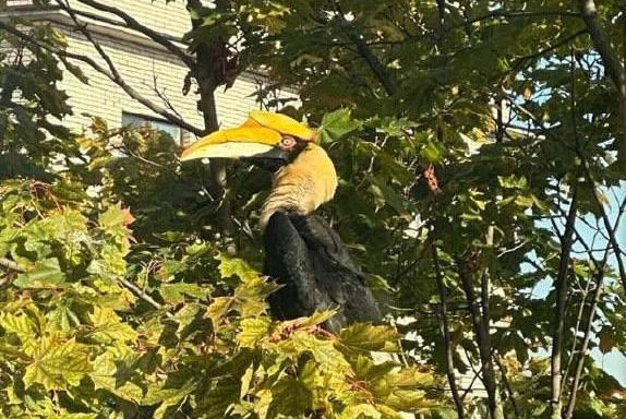 Экзотическую птицу-носорога по имени Шанти заметили на дереве недалеко от станции метро «Спортивная». Об этом написали в телеграм-канале «Петроградский район».