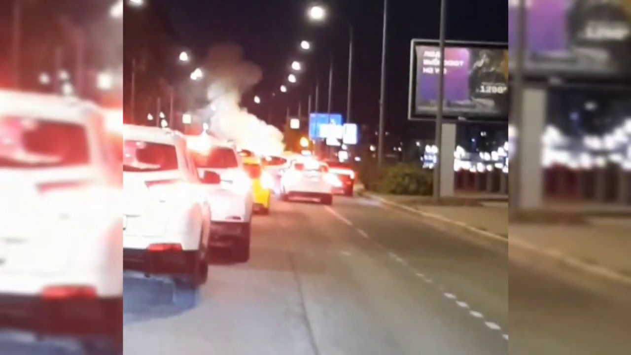 В Петроградском районе Петербурга на Аптекарской набережной загорелась иномарка. Кадры с полыхавшим БМВ запечатлели очевидцы «Петербургского дневника».