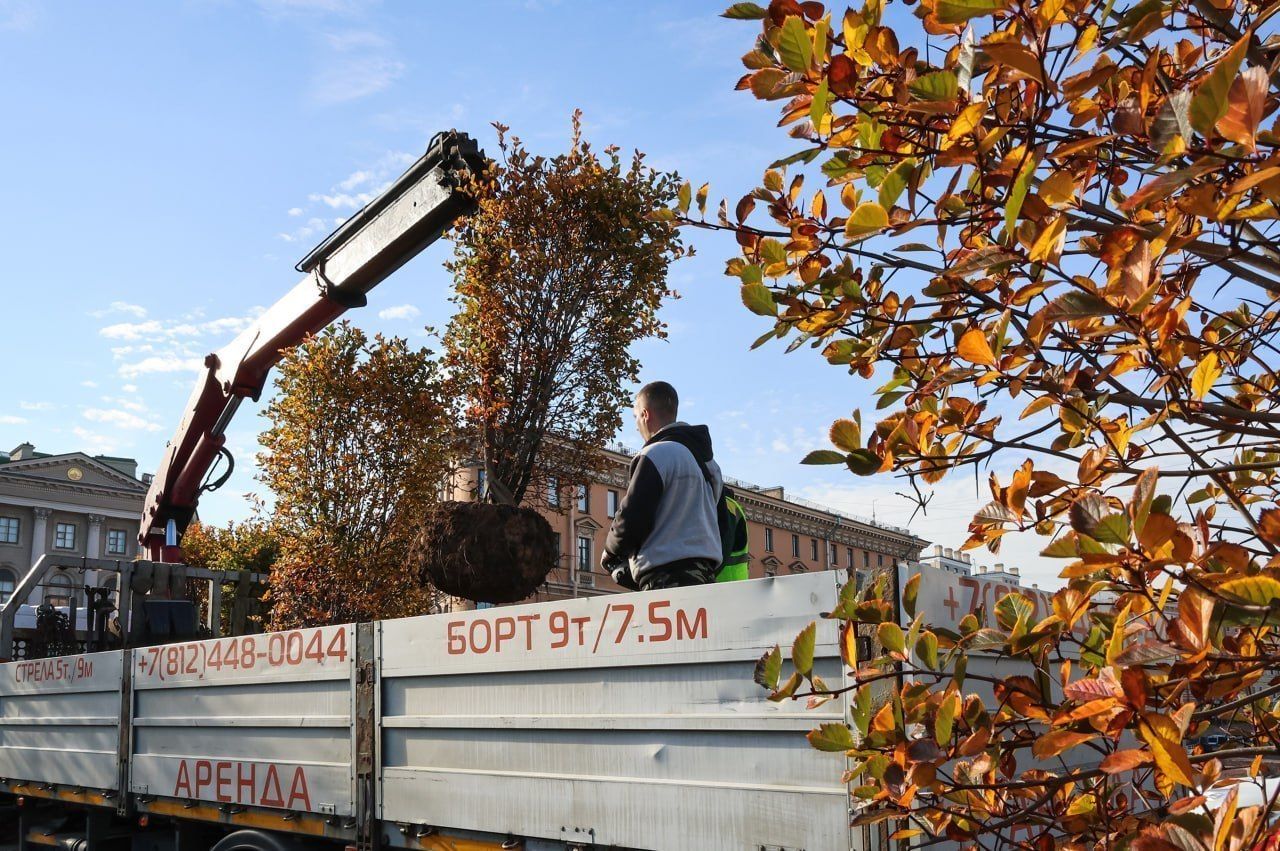 В Пушкин продолжают привозить зеленые насаждения из сада-трансформера на Исаакиевской площади