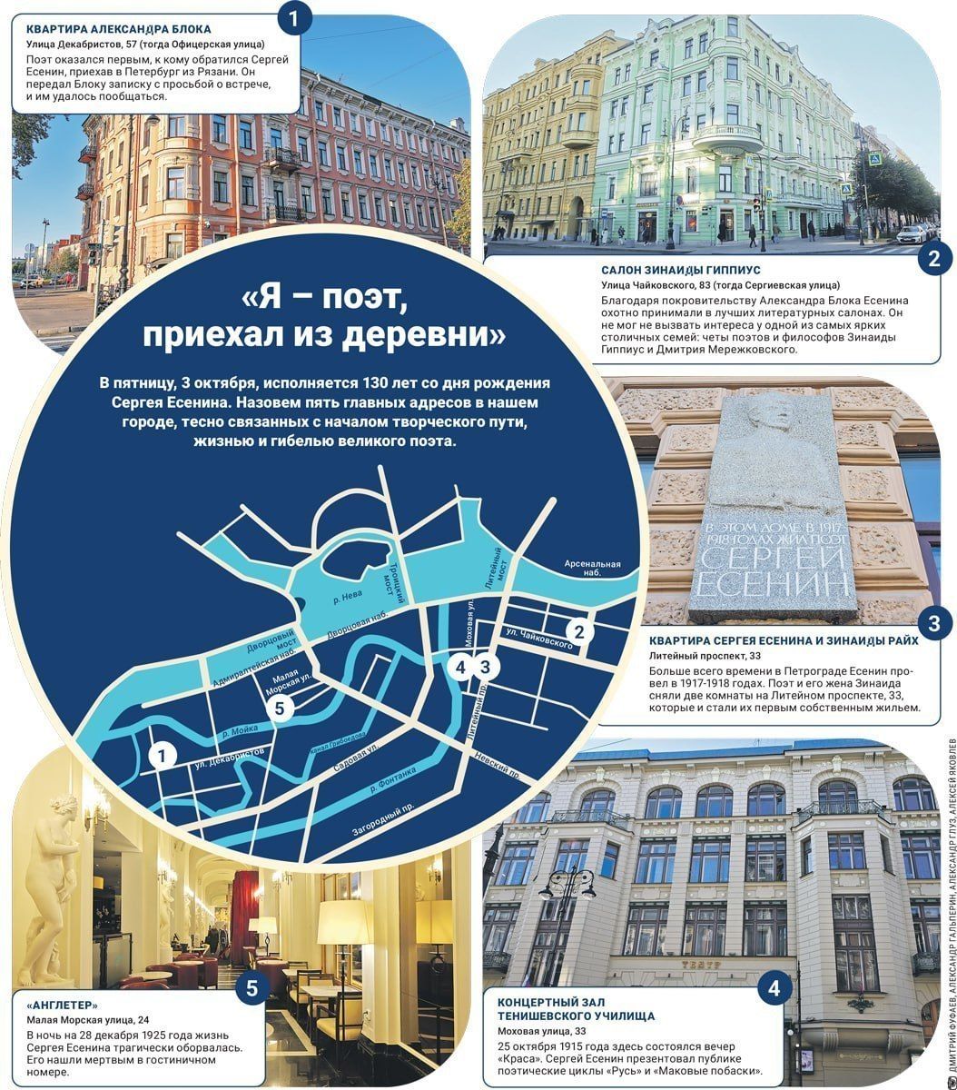 Вспоминаем Есенина: ключевые места в Петербурге, которые связаны с юбиляром