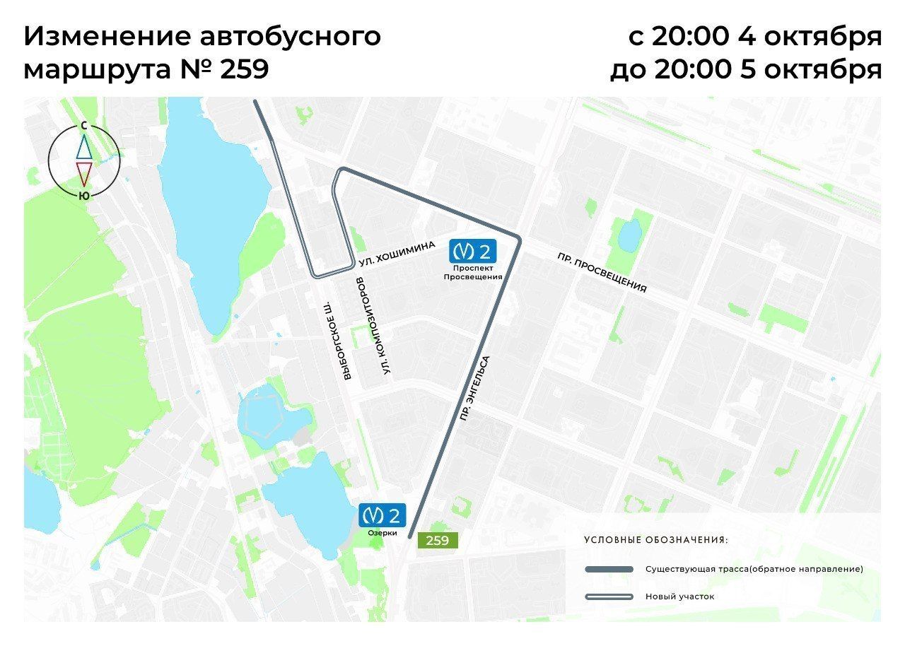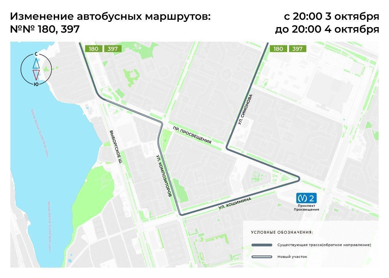 Также с 20:00 4 октября до 20:00 5 октября изменятся трассы автобусных маршрутов №180А, 259.