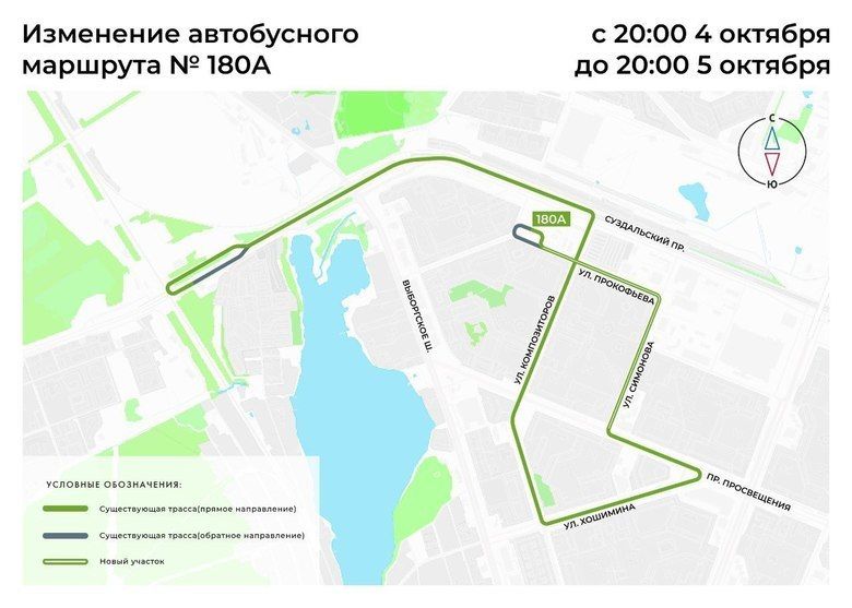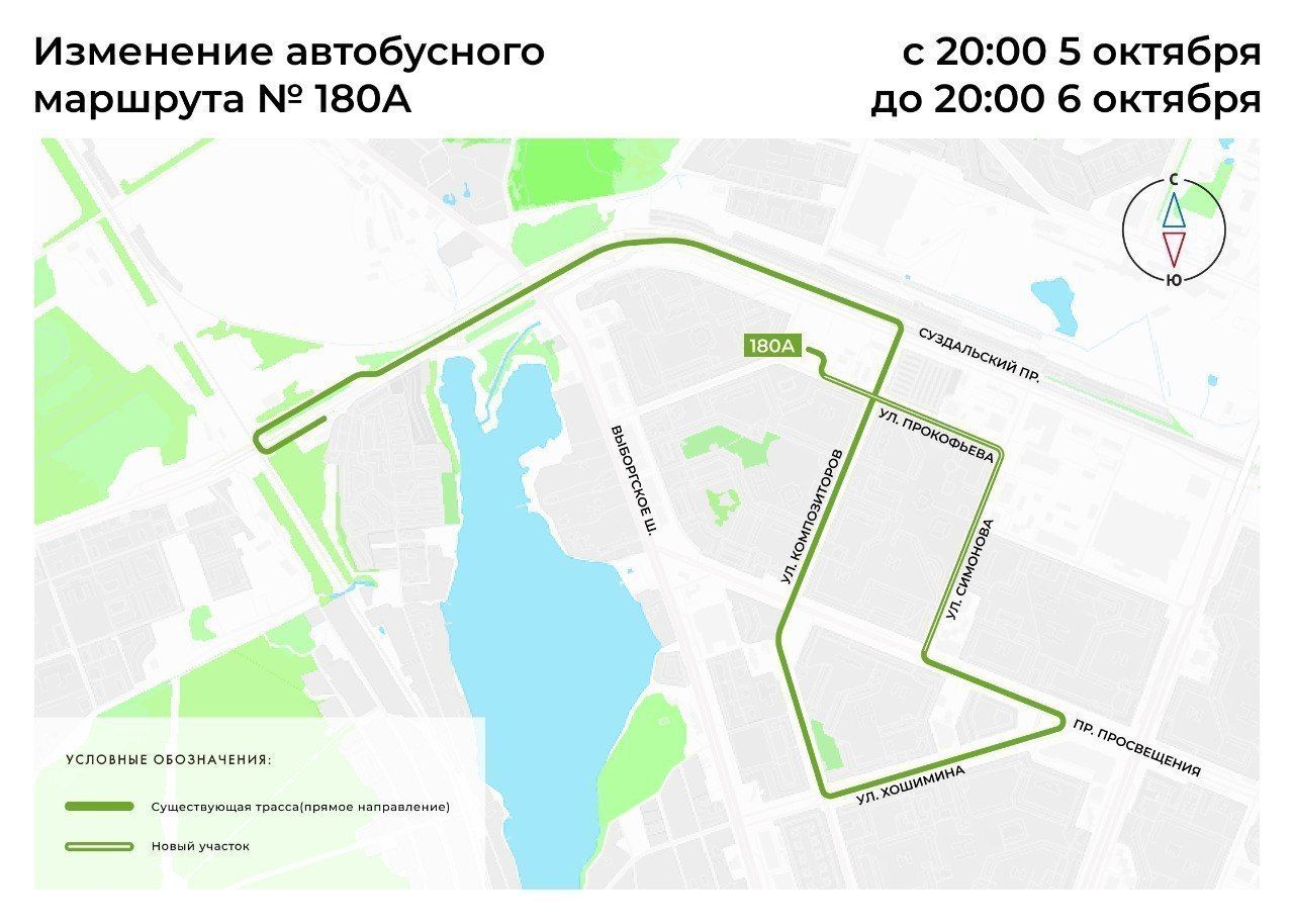 С 20:00 5 октября до 20:00 6 октября автобусный маршрут №180А направлен по измененной трассе.