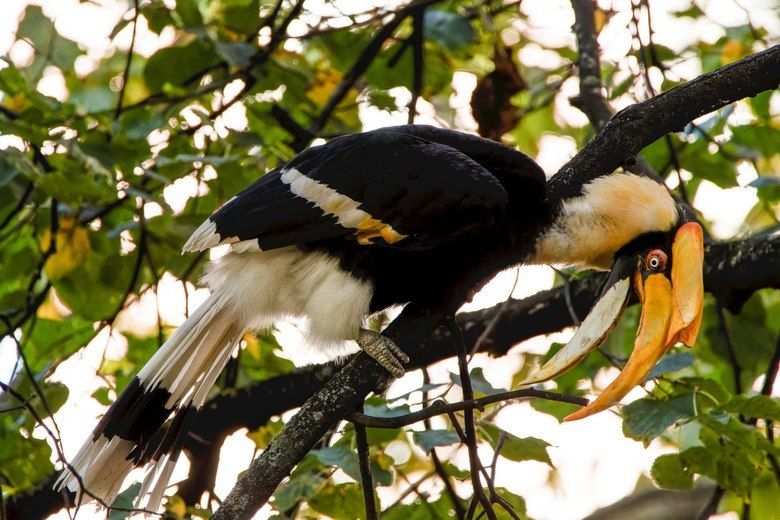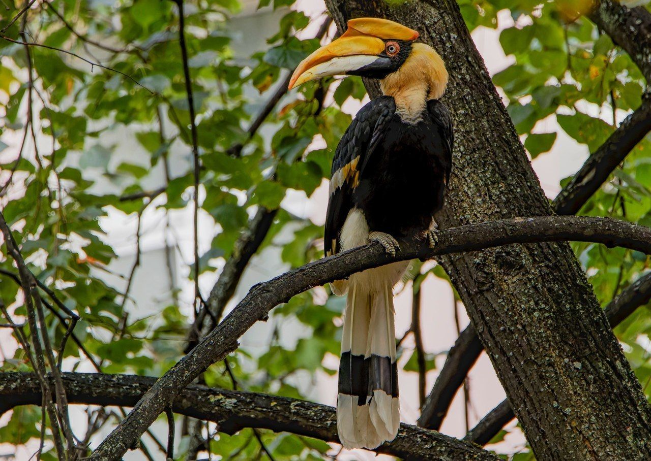 Во вторник на этой неделе при пересадке из летнего вольера в зимнюю квартиру сбежала птица калао – она же индийская птица-носорог. Шанти – это самка, которой больше 10 лет. Её точно можно назвать крупной птицей: животное в высоту около метра и с размахом крыльев до полутора метров. В дикой природе она питается в основном фруктами, но также собирает насекомых и может полакомиться мышевидными грызунами. В зоопарке Шанти полюбился виноград, с помощью которого её позже поймали.