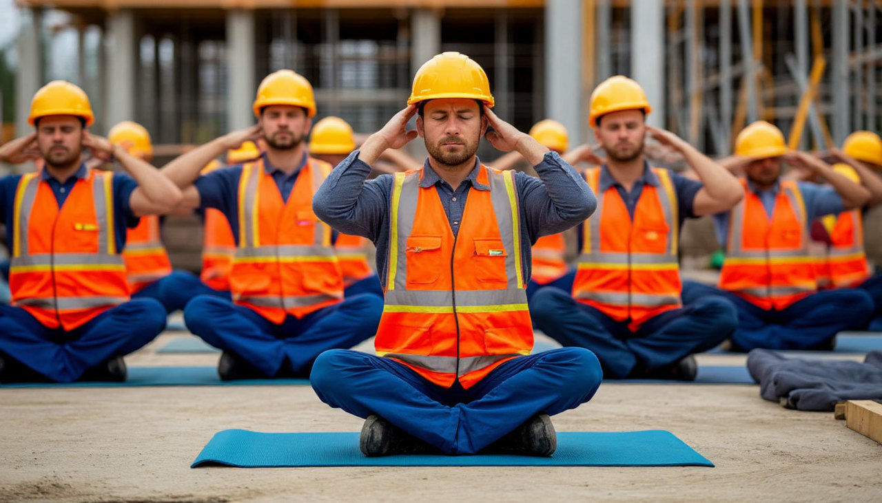 В Ленобласти строители во время перерыва на обед практикуют йогу
