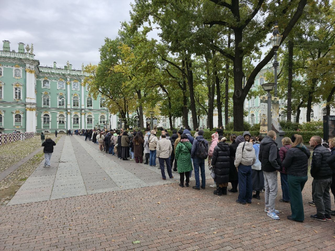 В воскресенье, 5 октября, Эрмитаж сделал бесплатным вход для учителей в честь их профессионального праздника. Вероятно, этим предложением поспешили воспользоваться многие, поскольку у входа в музей скопилась огромная очередь.