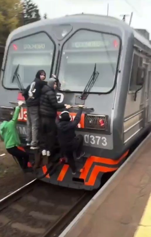 Видео опубликовал Telegram-канал «Петербург с огоньком». На кадрах видно, что четыре подростка, которым на вид 12 лет, зацепились за электричку, когда она начала набирать ход.