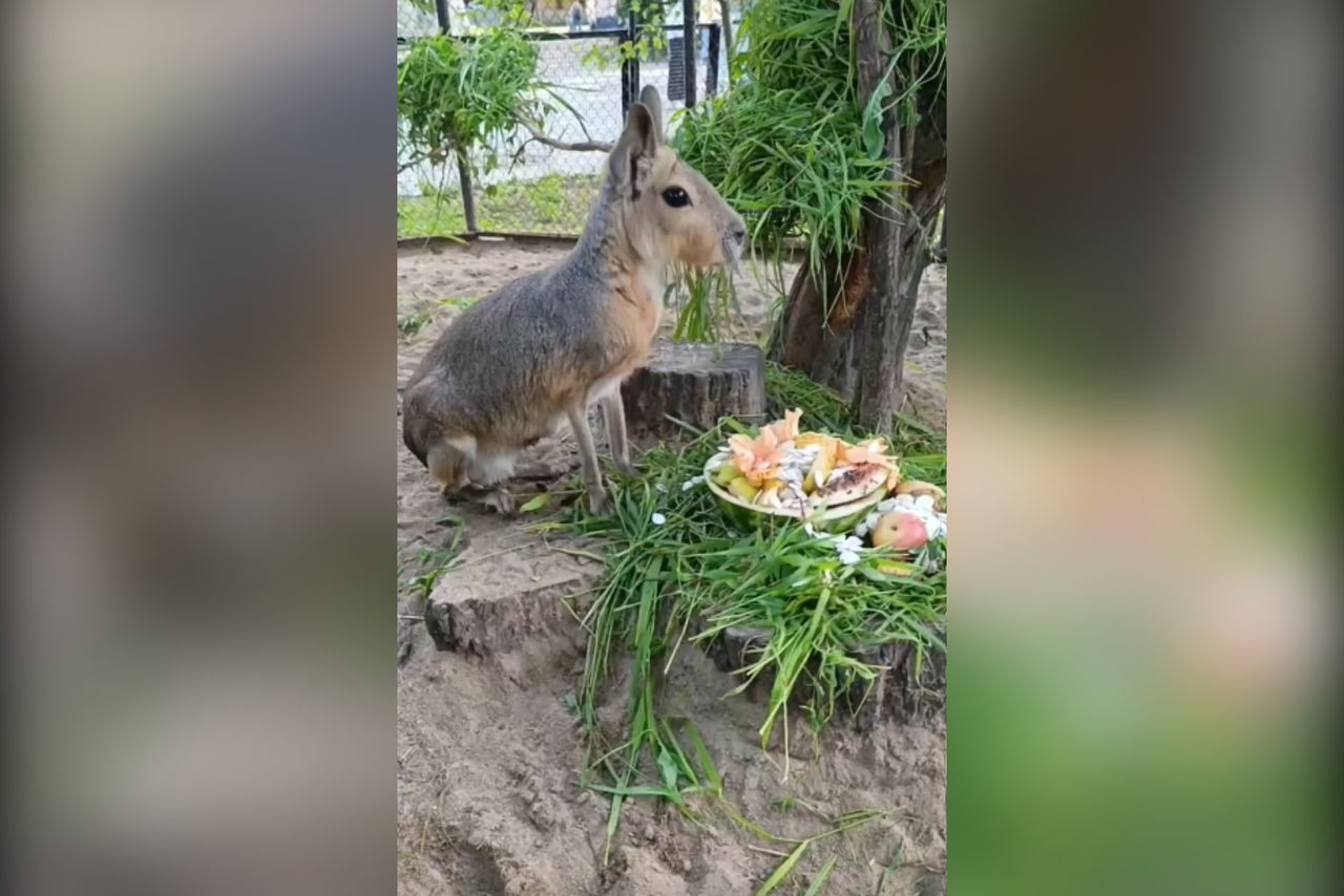 Патагонская мара Октябрь из Ленинградского зоопарка отмечает четвертый день рождения