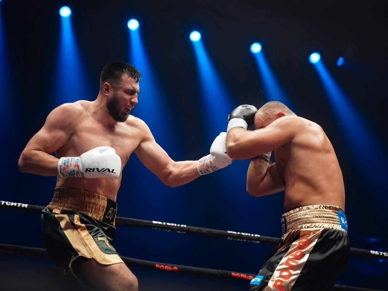 В главном бою вечера сошлись два супертяжеловеса: Мурад Халидов, представляющий Москву, одержал победу над Сергеем Кузьминым из Петербурга.