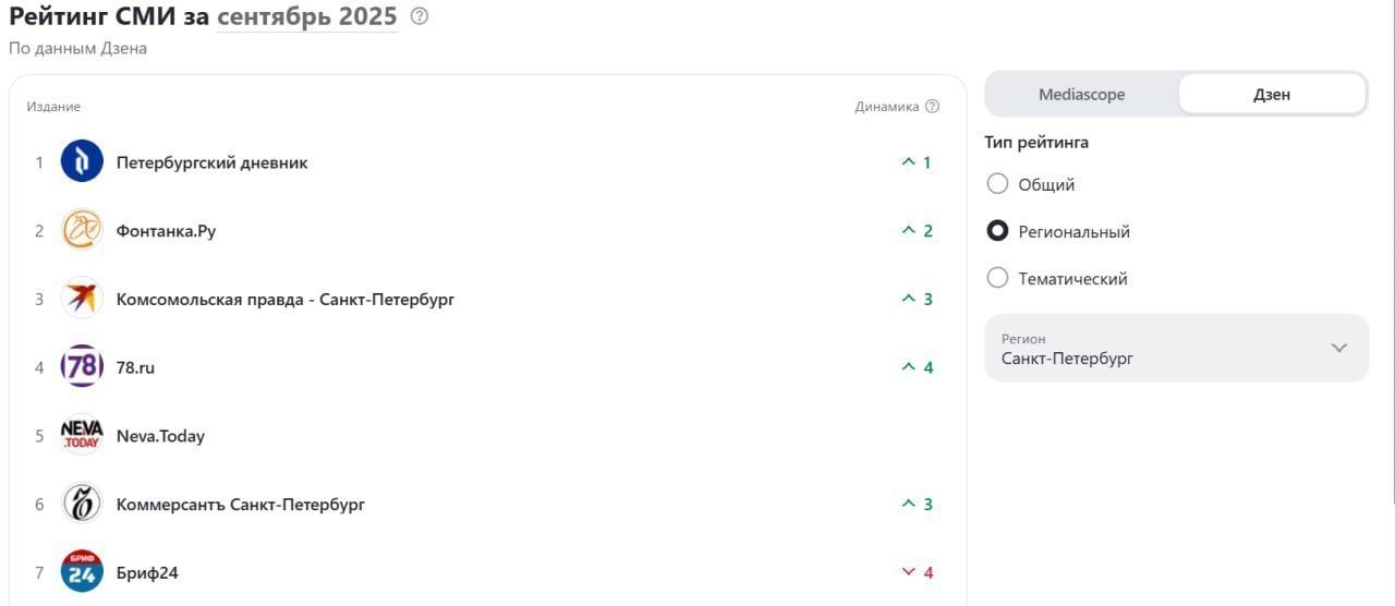 Ранее мы писали, что во II квартале 2025 года «Петербургский дневник» вошел в тройку лидеров рейтинга СМИ Петербурга и региона.