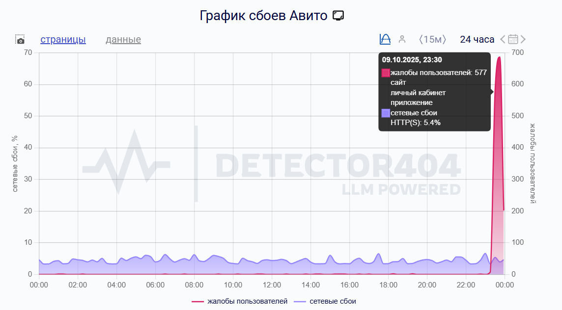Сайт и мобильное приложение «Авито» стали недоступны вечером четверга. Наибольшее число обращений поступило из Ленинградской области и Санкт-Петербурга, следует из данных Downdetector.