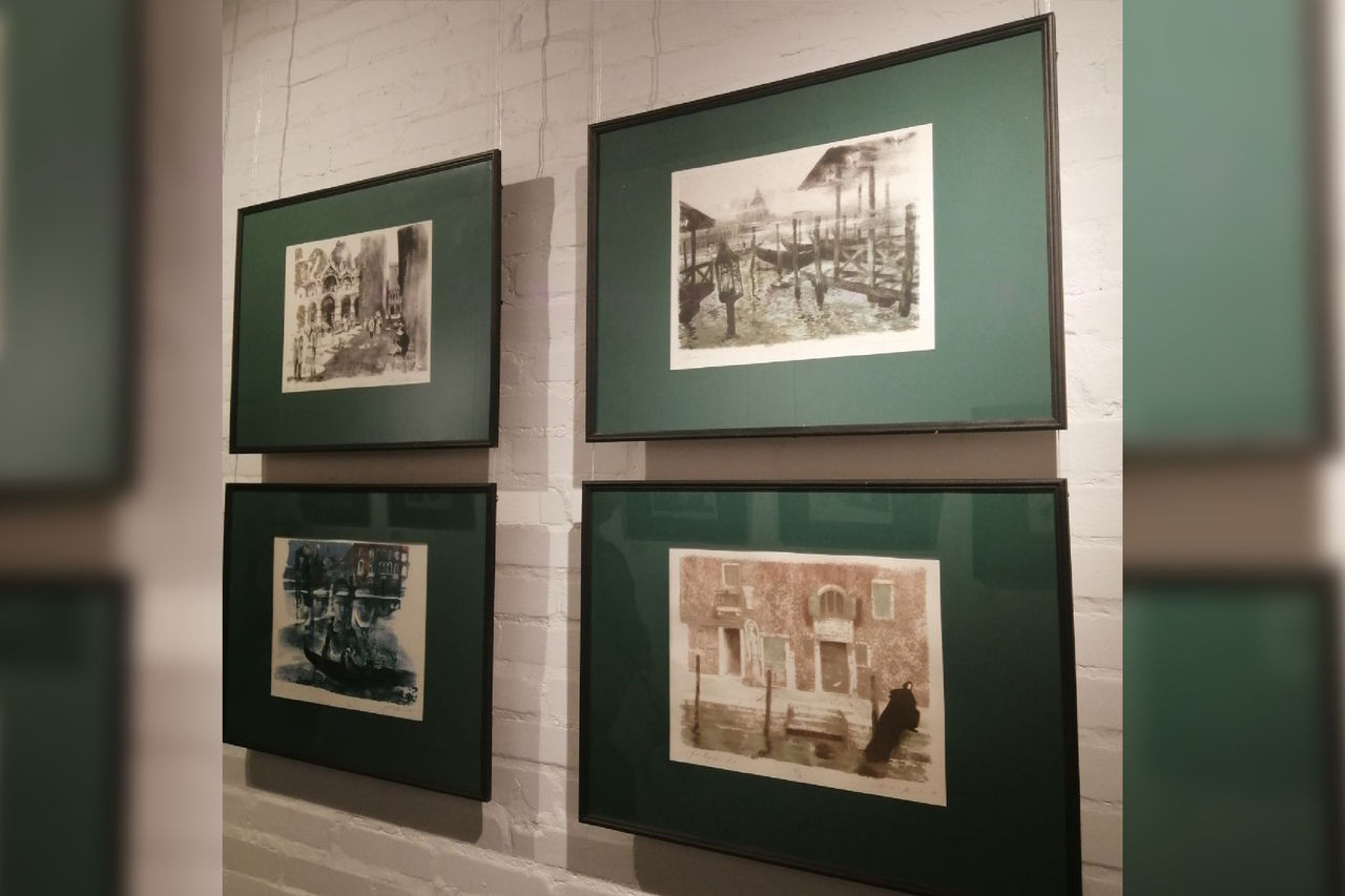 На экспозиции представлено множество графических и живописных работ, на которых изображены истории прошлого, и каждая из них – особенная. На полотнах венецианские пейзажи, отсылающие нас к произведениям немецкого писателя Томаса Манна, например вид с балкона, видения или мост Святого Антония.