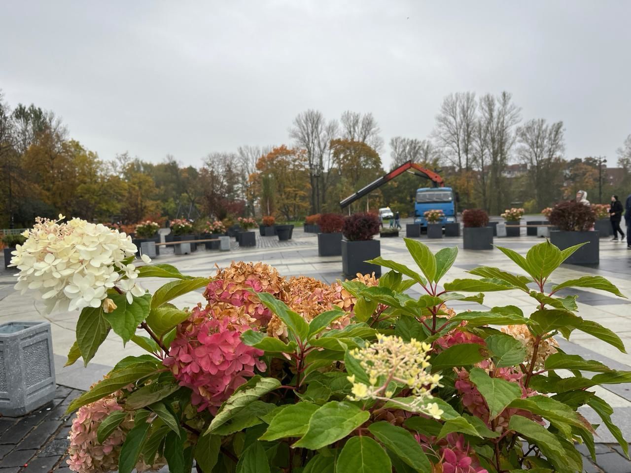 Часть зелёных насаждений, в том числе гортензии, пирамидальные и шаровидные туи и рододендроны, отправят в Сестрорецк. На Московской площади сегодня также приступили к уборке временного сада, который в этом году был устроен впервые: здесь искусственный рельеф образовал «холмы» с декоративными культурами, сменяющими цветение в течение сезона.