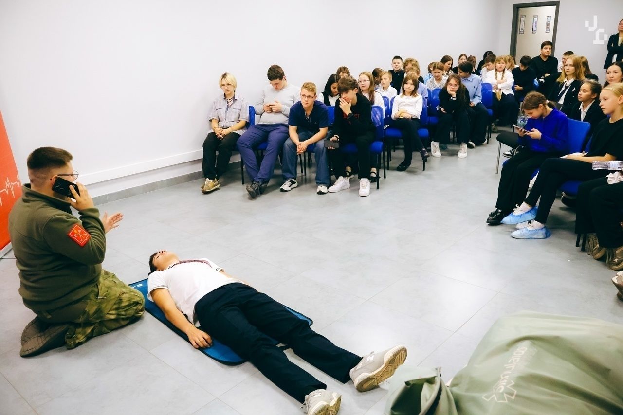 Ребята узнали основные принципы и методы оказания экстренной медицинской помощи в чрезвычайных ситуациях. Инструктор подробно рассказал о способах остановки кровотечения, правильном применении жгутов, транспортировке пострадавших и других важных приемах.