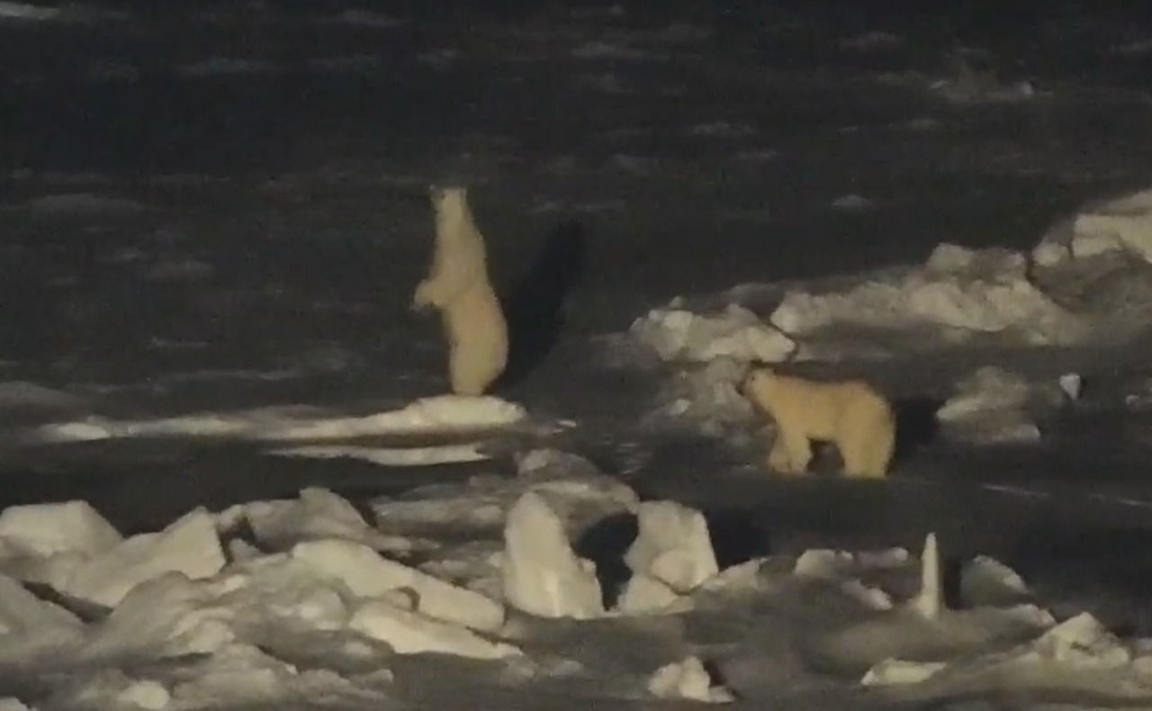 Пара любопытных белых медведей навестила полярников на дрейфующей станции