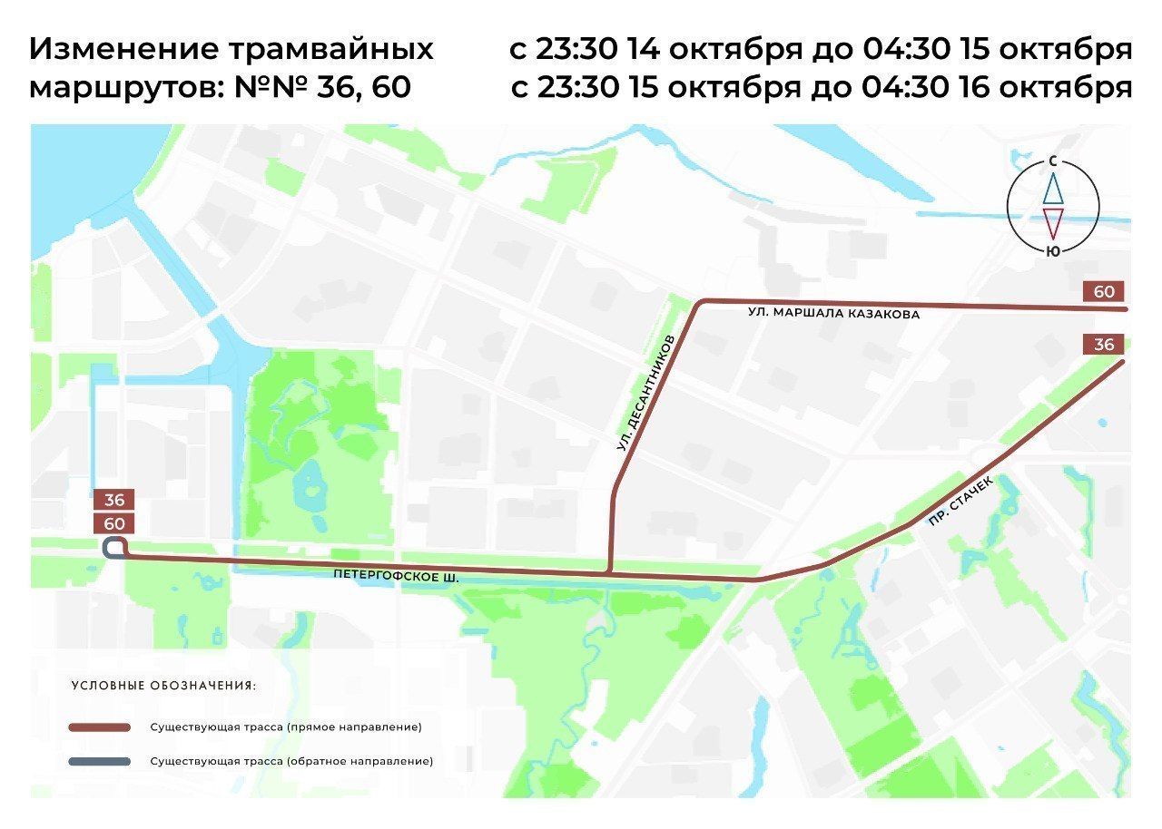 Трамваи №36 и 60 изменят движение 15 и 16 октября