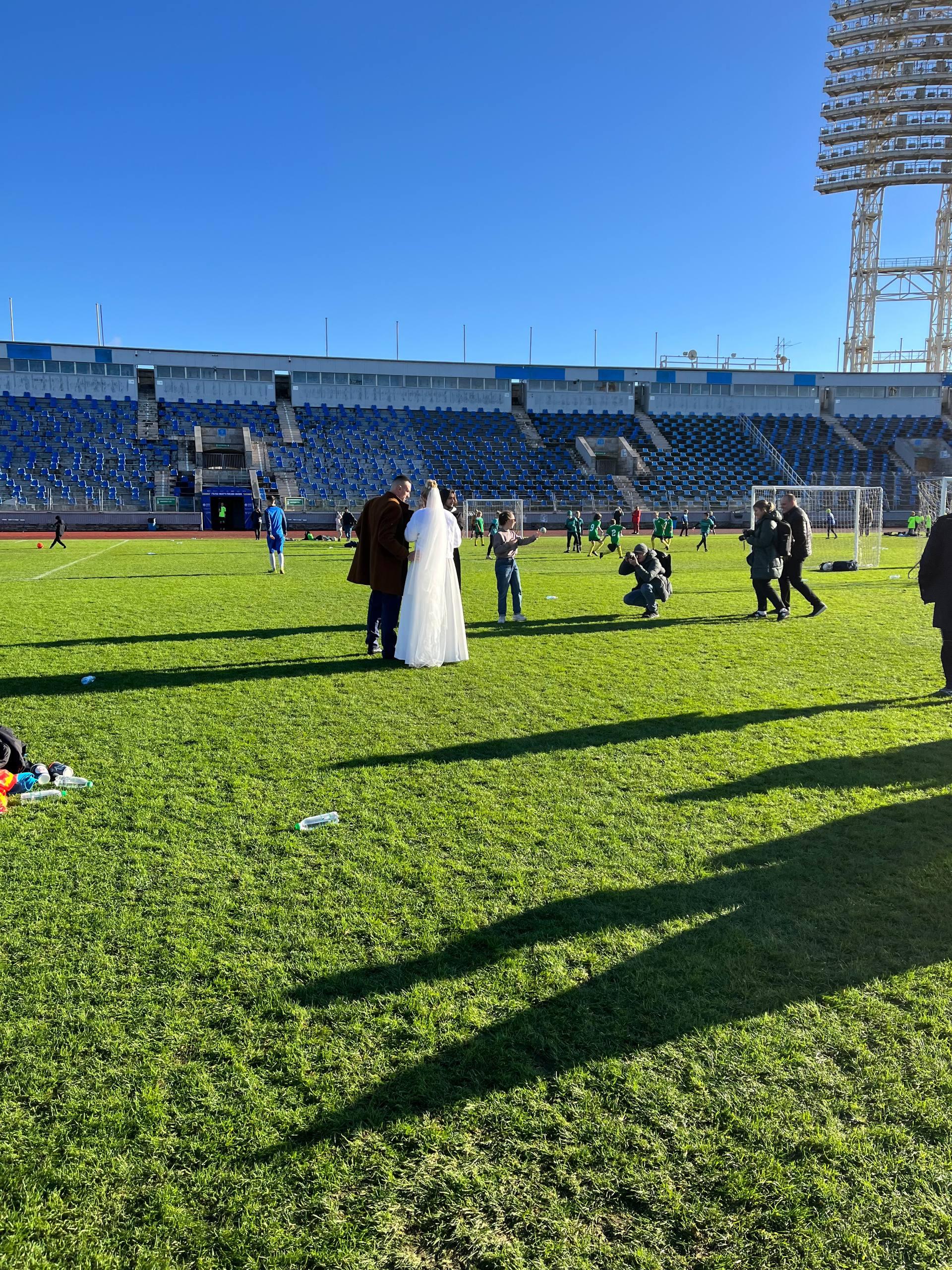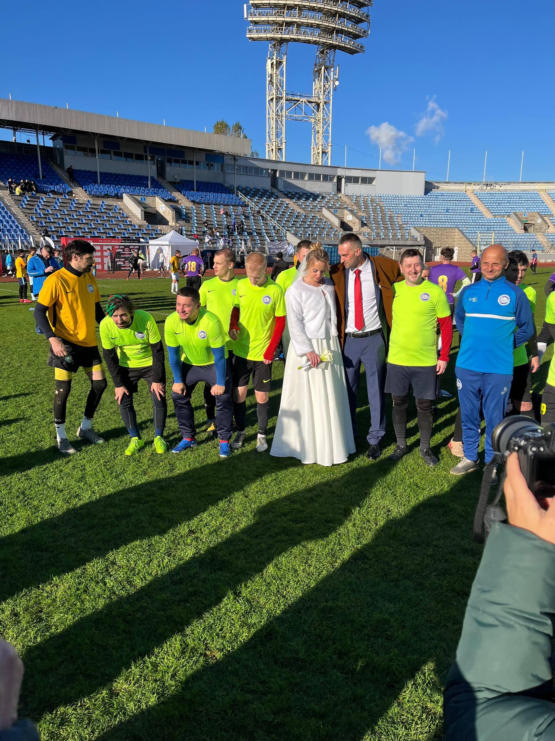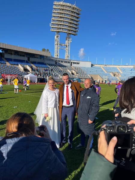 Капитан футбольной команды «Горэлектротранса» Павел сегодня не участвует в третьем Кубке Лаврова и Семенова на стадионе «Петровский», но всё равно приехал поддержать ребят – вместе со своей невестой Ириной.