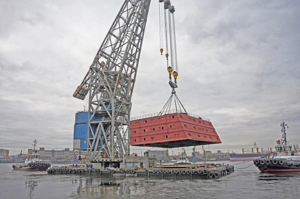 В Санкт-Петербурге Балтийский завод ОСК установил на атомном ледоколе «Чукотка» второй укрупненный блок секций жилой надстройки весом примерно 300 тонн.