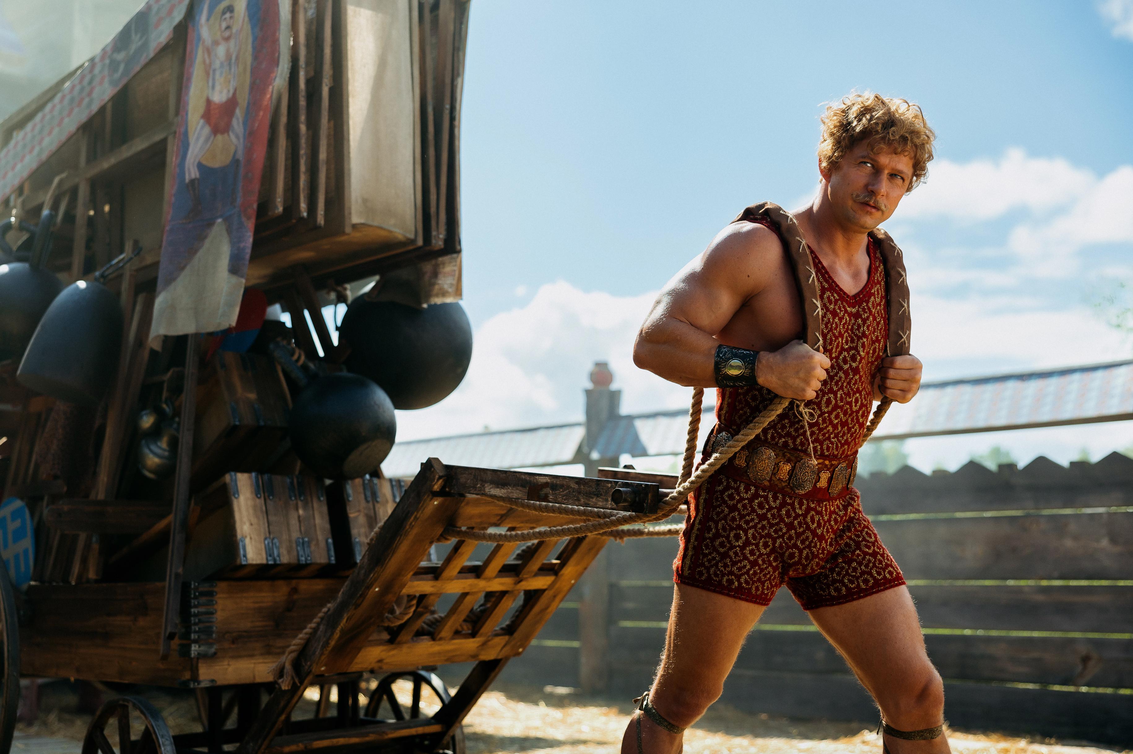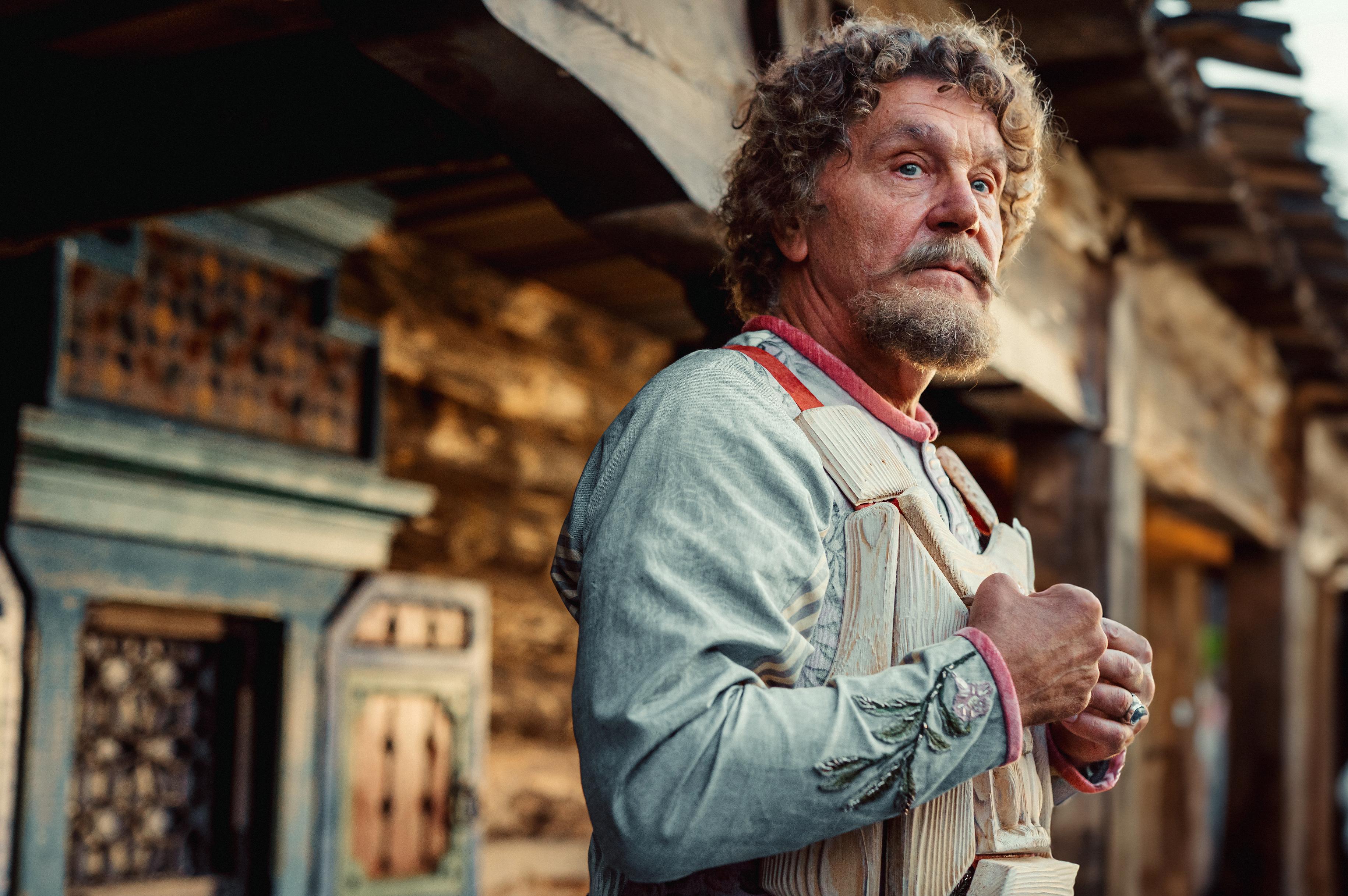 В сказке действительно много интересных образов. Роман Курцын появится в роли циркового силача Бамбулы, в котором из-за кудрей и оригинальной одежды чувствуется вайб Льва Бонифация. Евгений Серзин с блондинистым каре невероятно смешно выглядит в роли глупого барона Зигфрида, который добрую часть сказки не может вылезти из кирпичной трубы. Весьма неожиданно выглядит и Сергей Епишев, сыгравший нечистого на руку доктора Жуля.