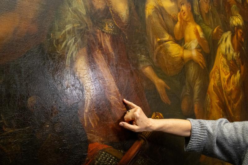 Как рассказала ведущий художник-реставратор отдела реставрации станковой масляной живописи, руководитель проекта Ольга Кленова, в ходе обследования на обеих картинах были выявлены жесткие изломы, многочисленные прорывы холста, заделанные с тыльной стороны пластырями, кракелюр (сеть тонких трещин) и утраты красочного слоя.