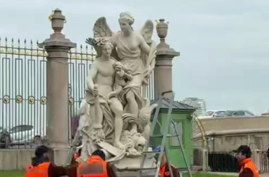 Стартовал осенне-зимний сезон – идёт подготовка к холодным месяцам скульптурной аллегории «Мир и Победа» («Ништадтский мир»), созданной в 1722–1723 годах Пьетро Бараттой, сообщили сегодня в пресс-службе Русского музея.