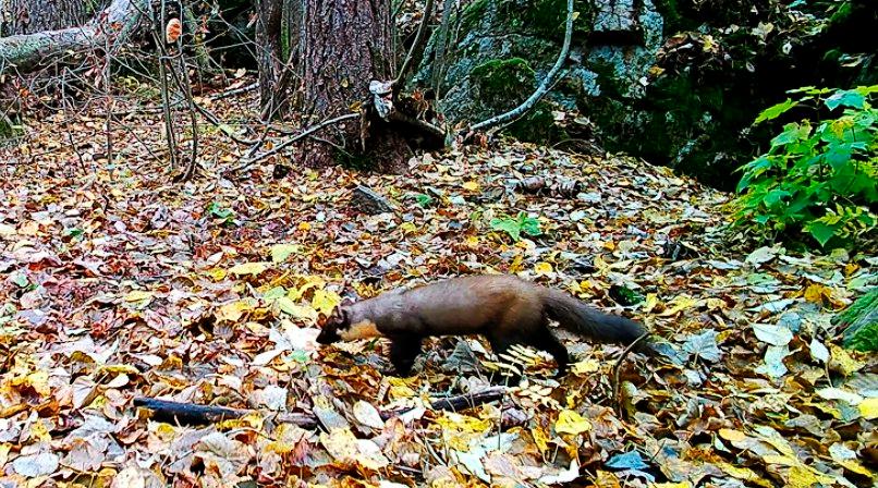 На Карельском перешейке днём удалось запечатлеть ночного хищника – лесную куницу, известную также как желтодушка из-за жёлто-оранжевого пятна на груди. Об этом сообщил биолог Павел Глазков.