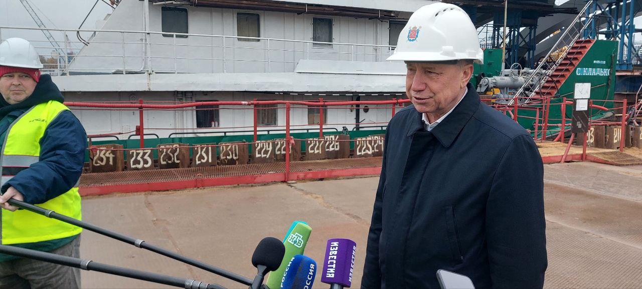 После осмотра строящейся переправы Александр Беглов напомнил, что таких разводных мостов через Неву в городе не строили 40 лет.