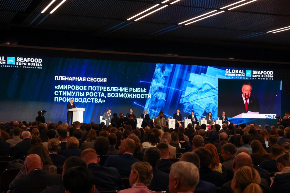 Участников пленарной сессии мероприятия приветствовали заместитель председателя правительства РФ Дмитрий Патрушев, губернатор Александр Беглов и руководитель Федерального агентства по рыболовству Илья Шестаков.