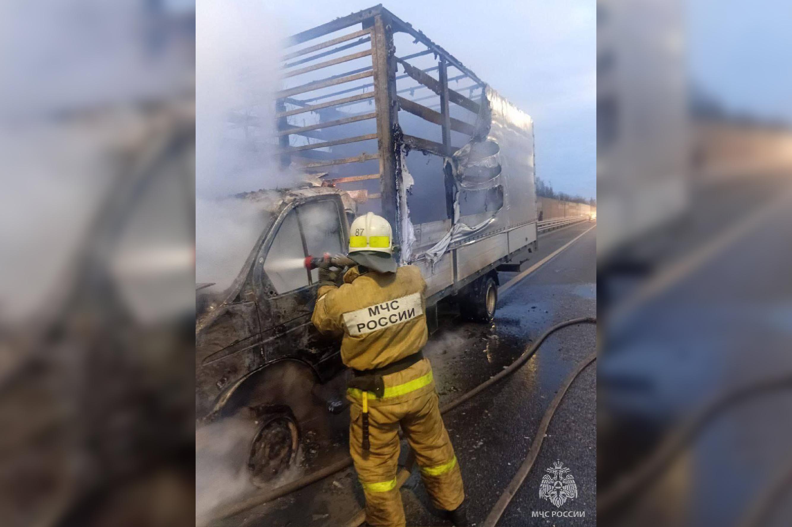В Тосненском районе Ленинградской области на платной трассе М-11 «Нева» полностью выгорела «Газель».