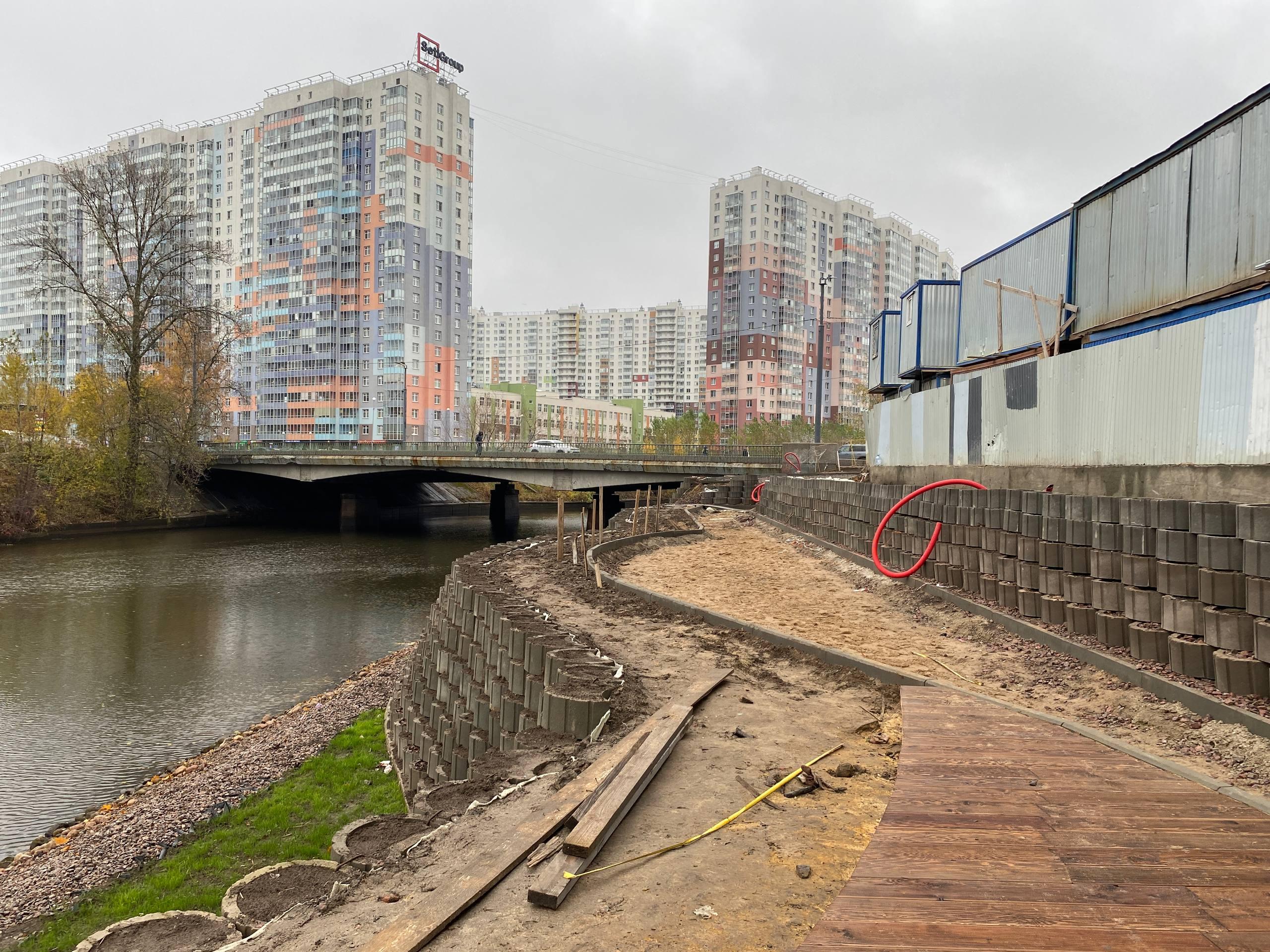 На участке у Комаровского моста подрядчики выходят на финишную прямую. Завершение запланировано на ноябрь. Уже применена современная технология гидропосева для газона, а в ближайшее время начнут монтировать декинг. Этот участок также ждет продление до моста Шаумяна в течение нескольких лет.