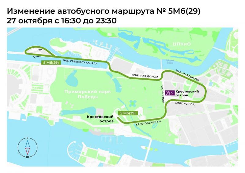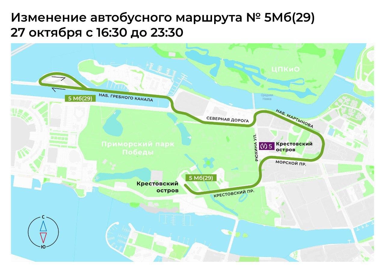 № 5МБ(29) А.С. «Крестовский остров» – наб. Гребного канала: закрыт.