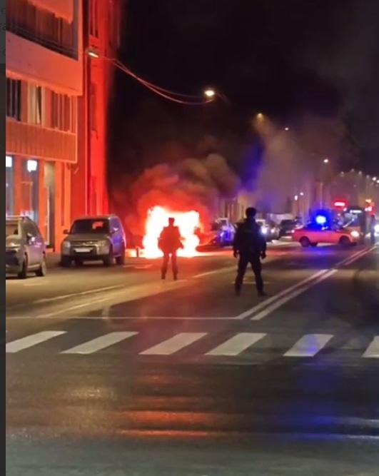 Появилось видео с горящей машиной на 16-17 линиях Васильевского острова. Пожар случился вечером во вторник, 28 октября.