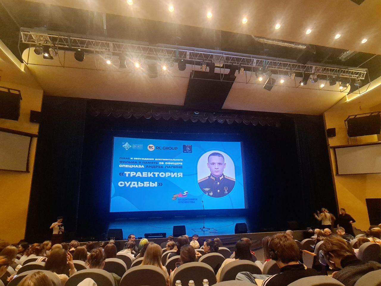 В киноцентре Института кино и телевидения в Петербурге прошёл премьерный показ документального фильма «Траектория судьбы». Картина рассказывает о гвардии старшем лейтенанте Андрее Лапине – офицере спецназа, погибшем при выполнении боевого задания в 2022 году, сообщили в региональном филиале фонда «Защитники Отечества».