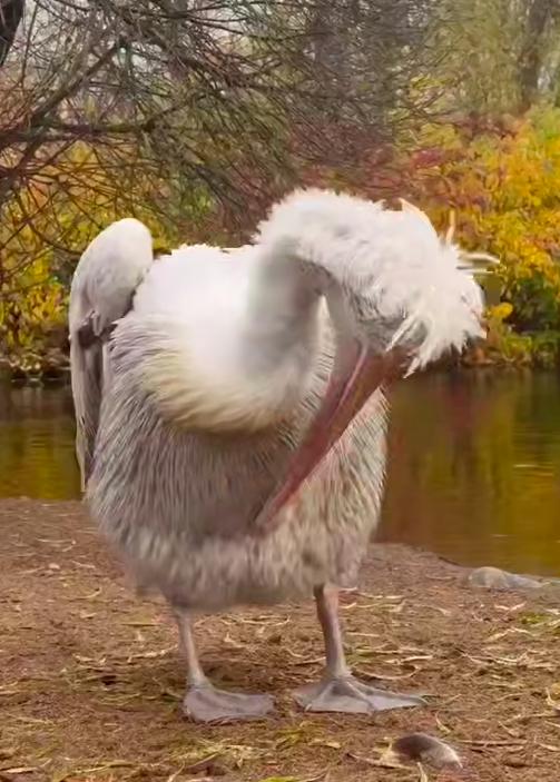 «Почистить пёрышки, повылавливать лакомства из пруда, покрасоваться перед посетителями и пройтись важной походкой. Такие планы у нашего кудрявого пеликана Полкана в этот пасмурный осенний день. В целом на земле пеликан чувствует себя не очень уверенно. Ходит он медленно, вперевалку, что можно заметить на видео. Взлетает с земли с большим трудом, делая несколько прыжков и отталкиваясь обеими лапами сразу», – отметили особенности своего питомца в зоопарке и опубликовали видео.