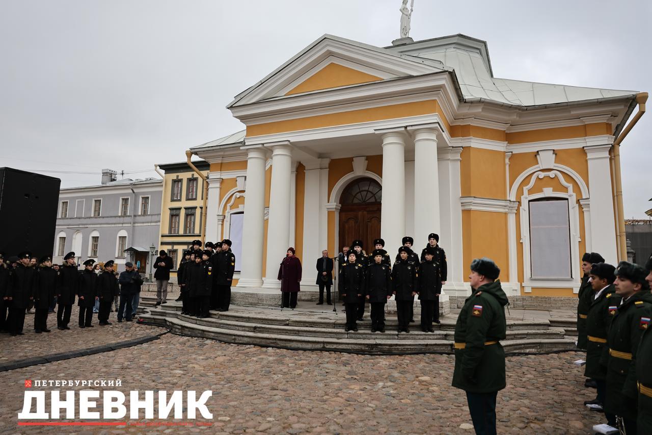 Мероприятие прошло на Соборной площади у входа в Ботный дом, в котором хранится точная копия «дедушки русского флота». В церемонии презентации приняли участие госгерольдмейстер РФ, замгендиректора Эрмитажа Георгий Вилинбахов и главный научный сотрудник ГМИ СПб Марина Логунова.