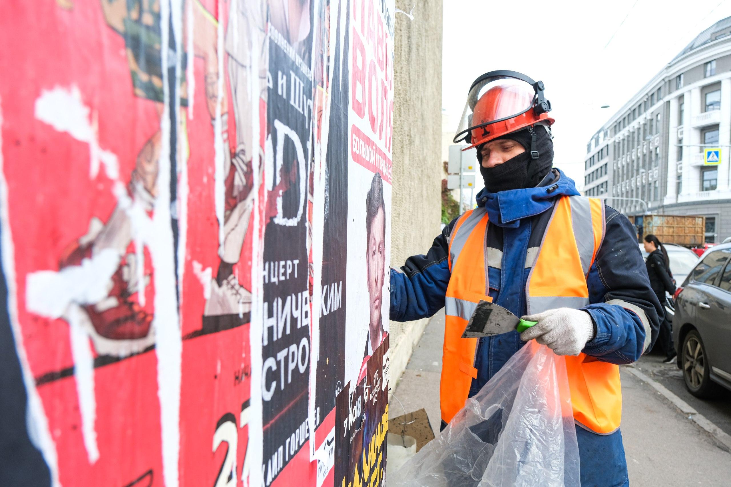 В Петербурге от рекламных наклеек очистили 7489 опор освещения