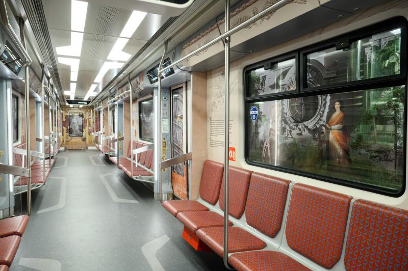 «Это практически произведение искусства. Состав оформлен соответствующим образом снаружи и внутри. Это совместный проект с производителем – компанией «Трансмашхолдинг». Готовили его целый год, и ходить он будет по красной ветке – тоже не менее года, начиная с 10 ноября», – сказал градоначальник в эфире телеканала «78».