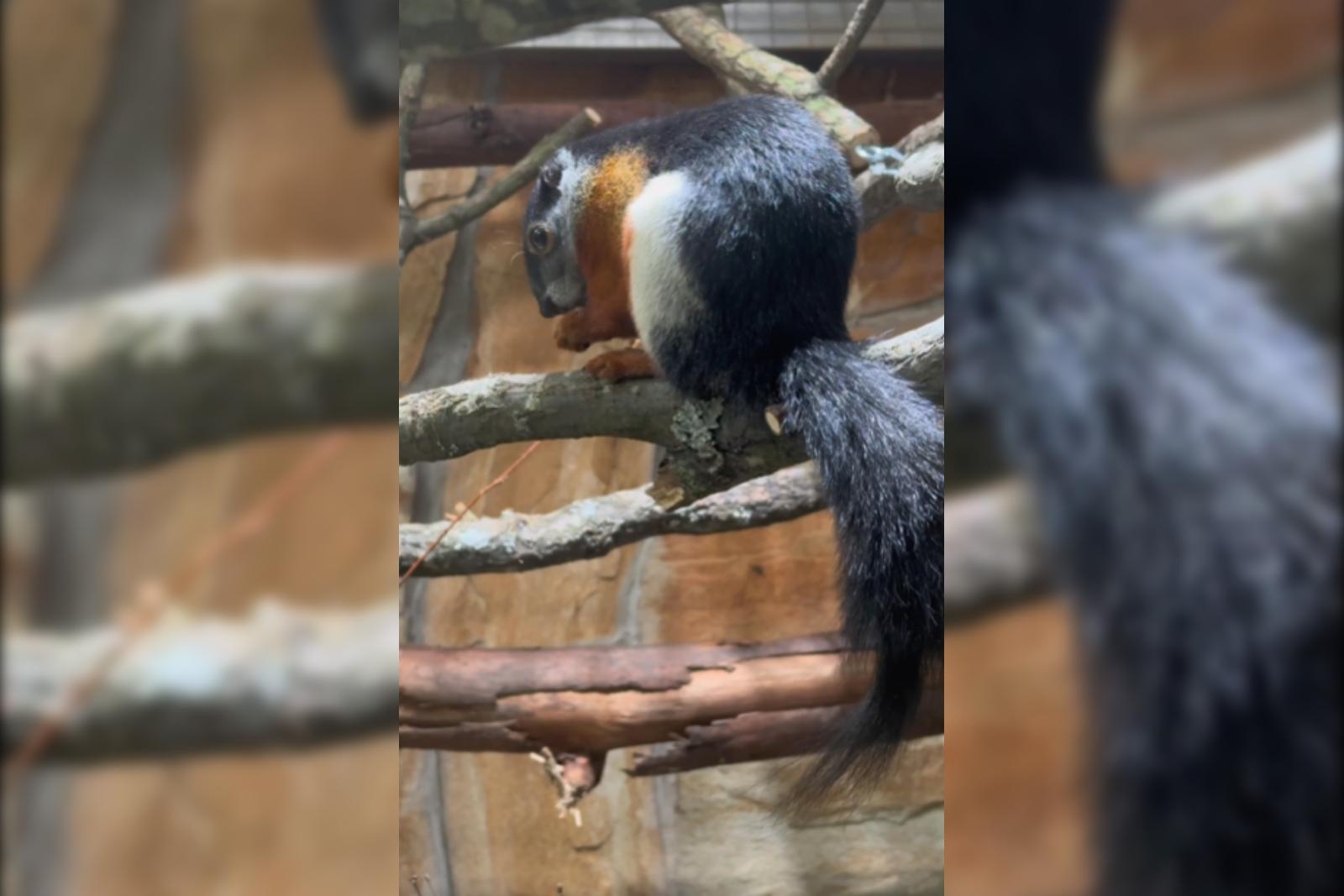 «Ее яркий наряд не ради красоты, а для маскировки. Чёрная спина, белые бока и рыжий живот помогают белке Превоста сливаться с деревьями, имитируя свет и тени в листве», – рассказали сотрудники зверинца.