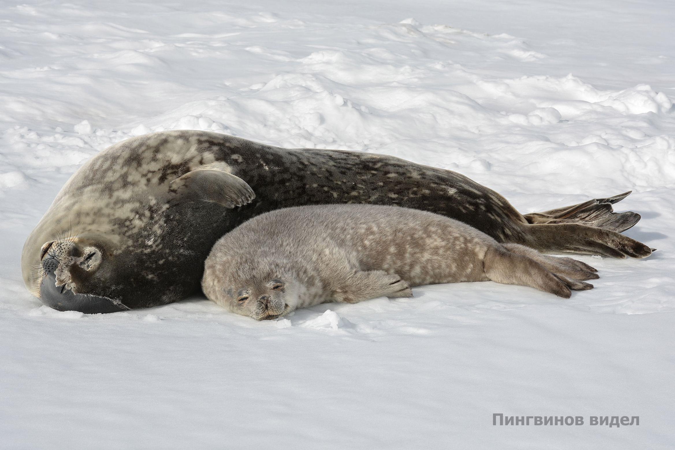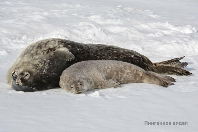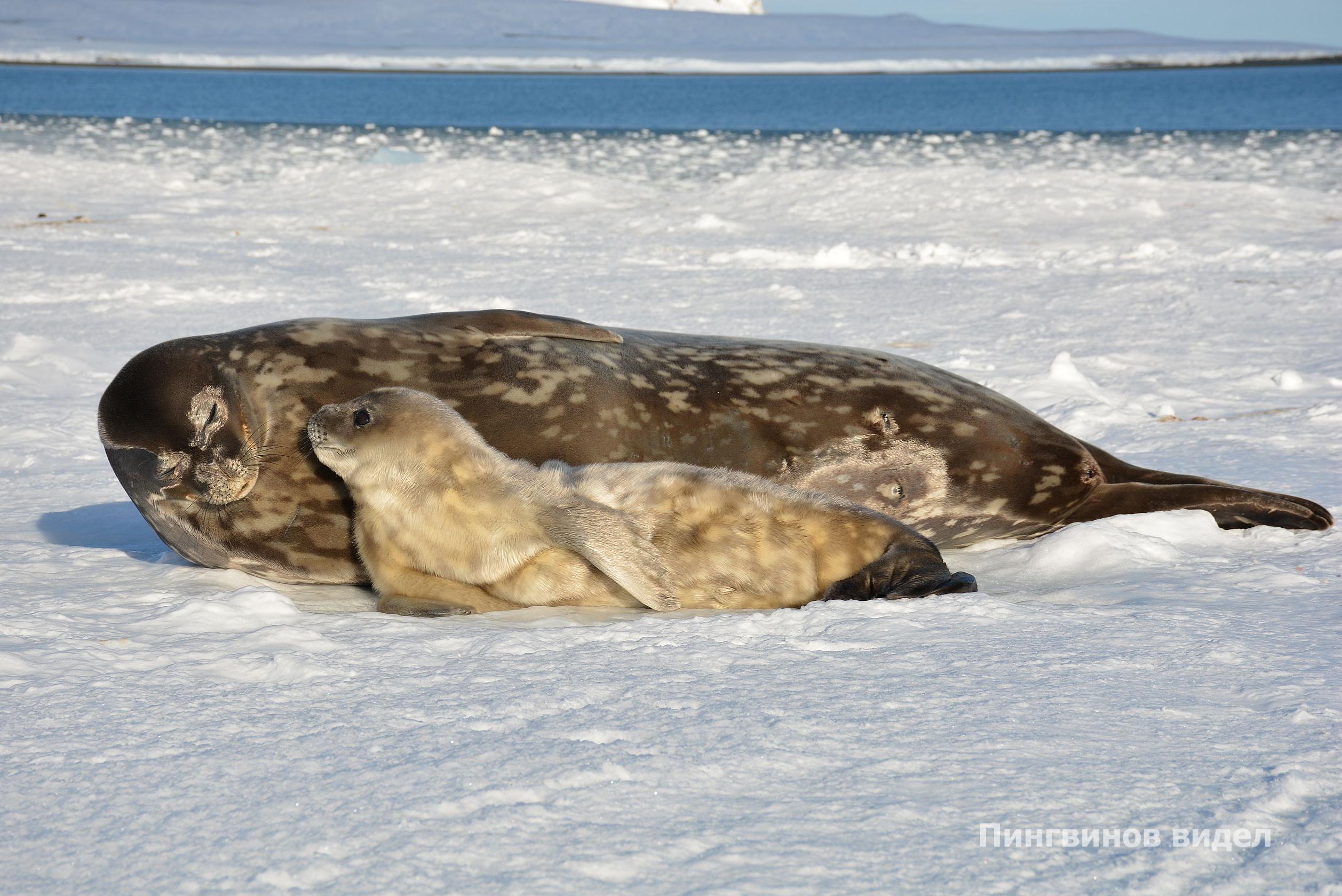 – На нашем побережье рожают самки тюленя Уэдделла. По‑моему, это единственный вид тюленей, у которых может родиться двойня – это довольно редкое событие. Детеныш при рождении покрыт особым младенческим волосом. Весит он примерно 25-30 килограммов и растет очень быстро. Около восьми недель он остаётся с мамой, а потом начинает самостоятельную жизнь.