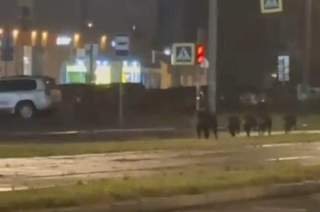В Веселом поселке Невского района Петербурга заметили семейство кабанов. Дикие животные в среду, 5 ноября, бежали по автомобильной дороге в районе шести утра.